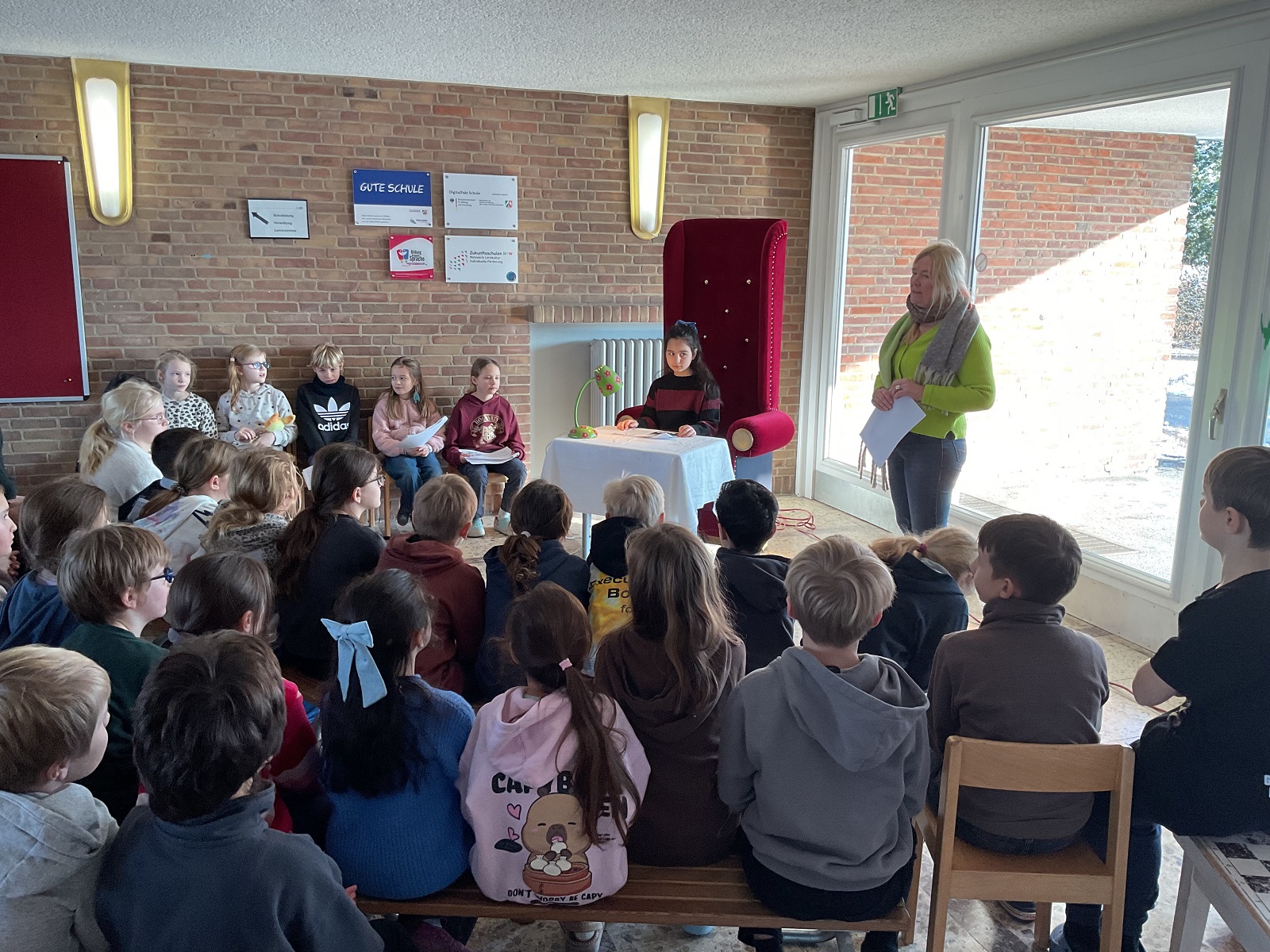 Es haben Ekin aus der 3a, Aenne, ebenfalls aus der 3a, Miriel aus der 3b, Felix auch aus der 3b und Sophie aus der 3c, sowie Paula aus der 3c vorgelesen.